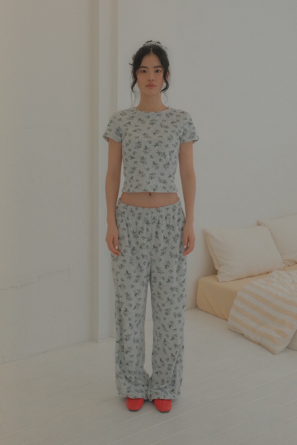 사진 속 키 168cm에 상의는 S(90)를, 하의는 S(26)를 주로 입는 모델이 착용했을 때